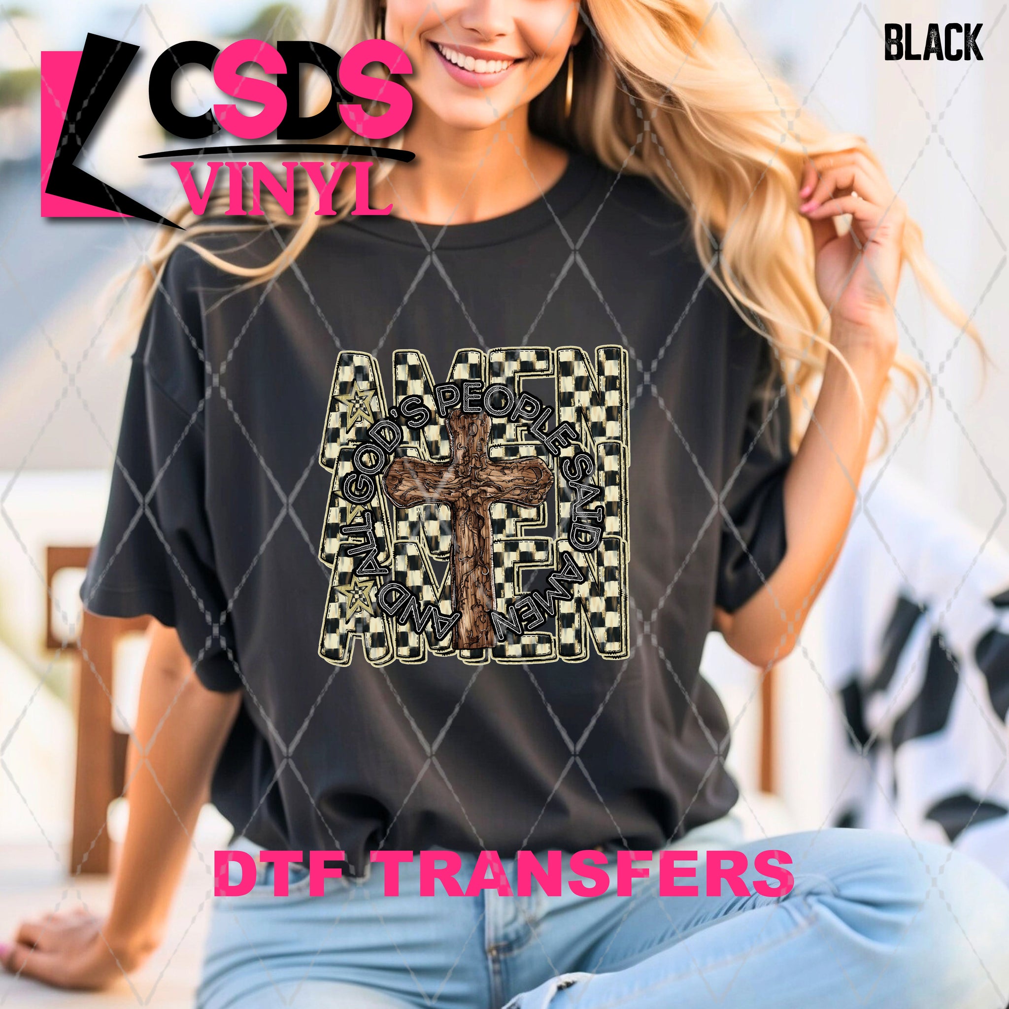 DTF transfers are a type of garment transfer that has been printed using a water-based DTF ink printed onto a clear release paper. This allows the end user the flexibility of when the transfer is applied and what the transfer is applied to. DTF transfers can be made in single color or full color images. Keep in mind that full color transfers will feel slightly thicker than single color transfers simply because more ink is used to create the transfer itself but we do pride ourselves with having some of the thinnest full color DTF transfers on the market. DTF transfers from CSDS Vinyl can be applied to any cotton, polyester, or cotton-poly blend materials.