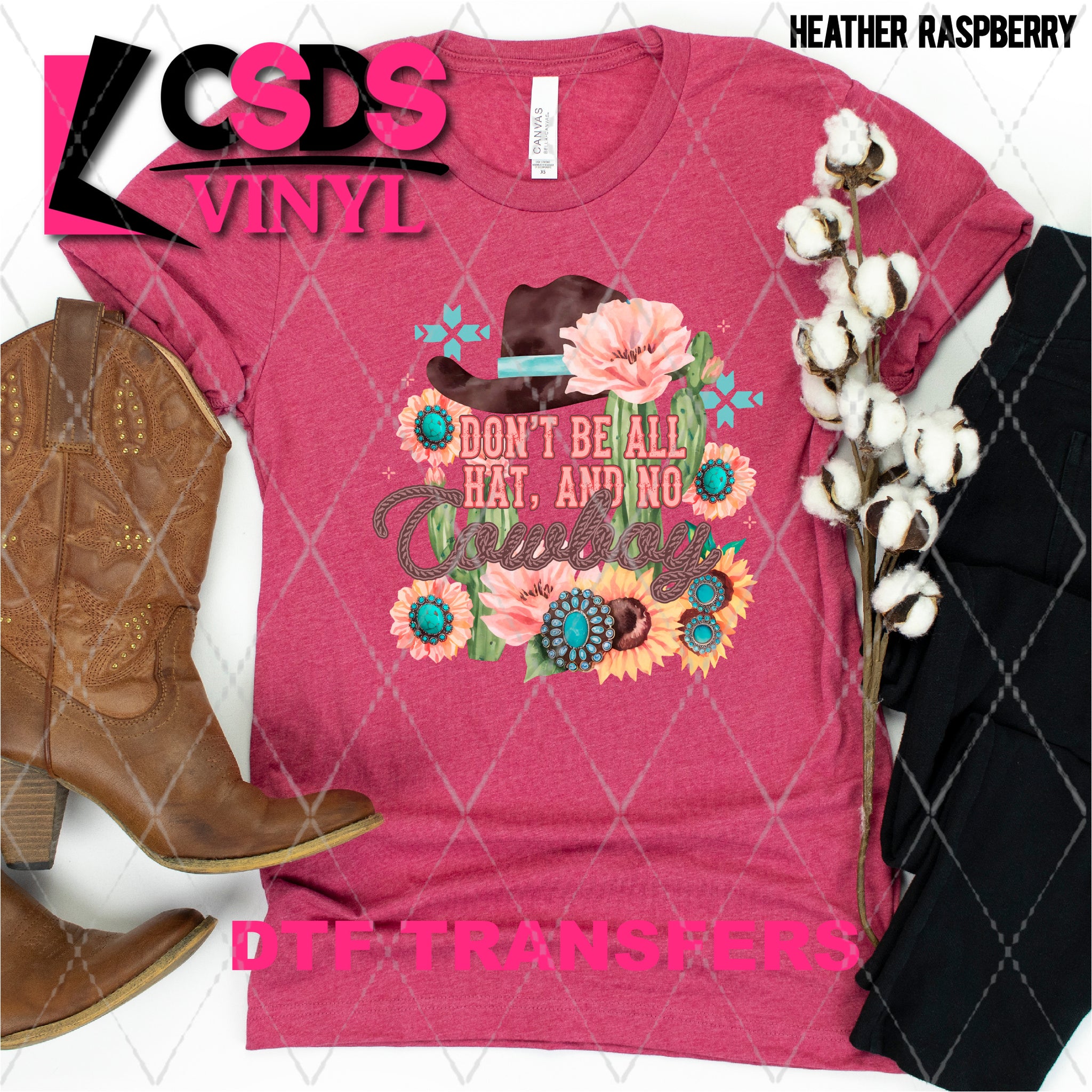 DTF transfers are a type of garment transfer that has been printed using a water-based DTF ink printed onto a clear release paper. This allows the end user the flexibility of when the transfer is applied and what the transfer is applied to. DTF transfers can be made in single color or full color images. Keep in mind that full color transfers will feel slightly thicker than single color transfers simply because more ink is used to create the transfer itself but we do pride ourselves with having some of the thinnest full color DTF transfers on the market. DTF transfers from CSDS Vinyl can be applied to any cotton, polyester, or cotton-poly blend materials.