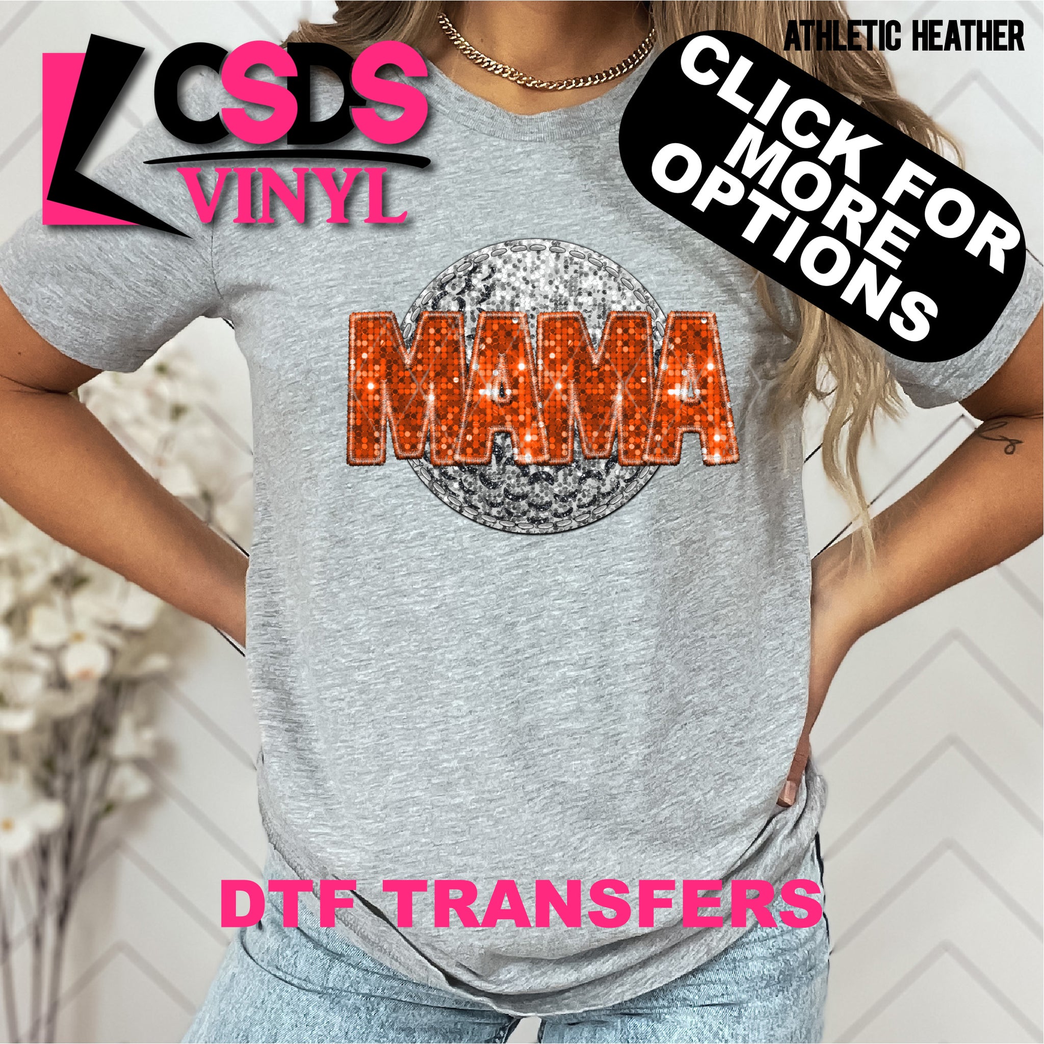 DTF transfers are a type of garment transfer that has been printed using a water-based DTF ink printed onto a clear release paper. This allows the end user the flexibility of when the transfer is applied and what the transfer is applied to. DTF transfers can be made in single color or full color images. Keep in mind that full color transfers will feel slightly thicker than single color transfers simply because more ink is used to create the transfer itself but we do pride ourselves with having some of the thinnest full color DTF transfers on the market. DTF transfers from CSDS Vinyl can be applied to any cotton, polyester, or cotton-poly blend materials.