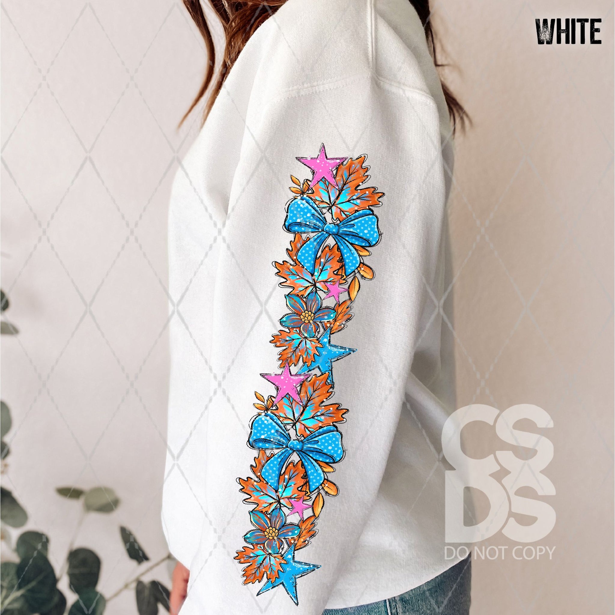 DTF Transfer - DTF013542 Painted Orange Pumpkin with a Blue Bow Sleeve