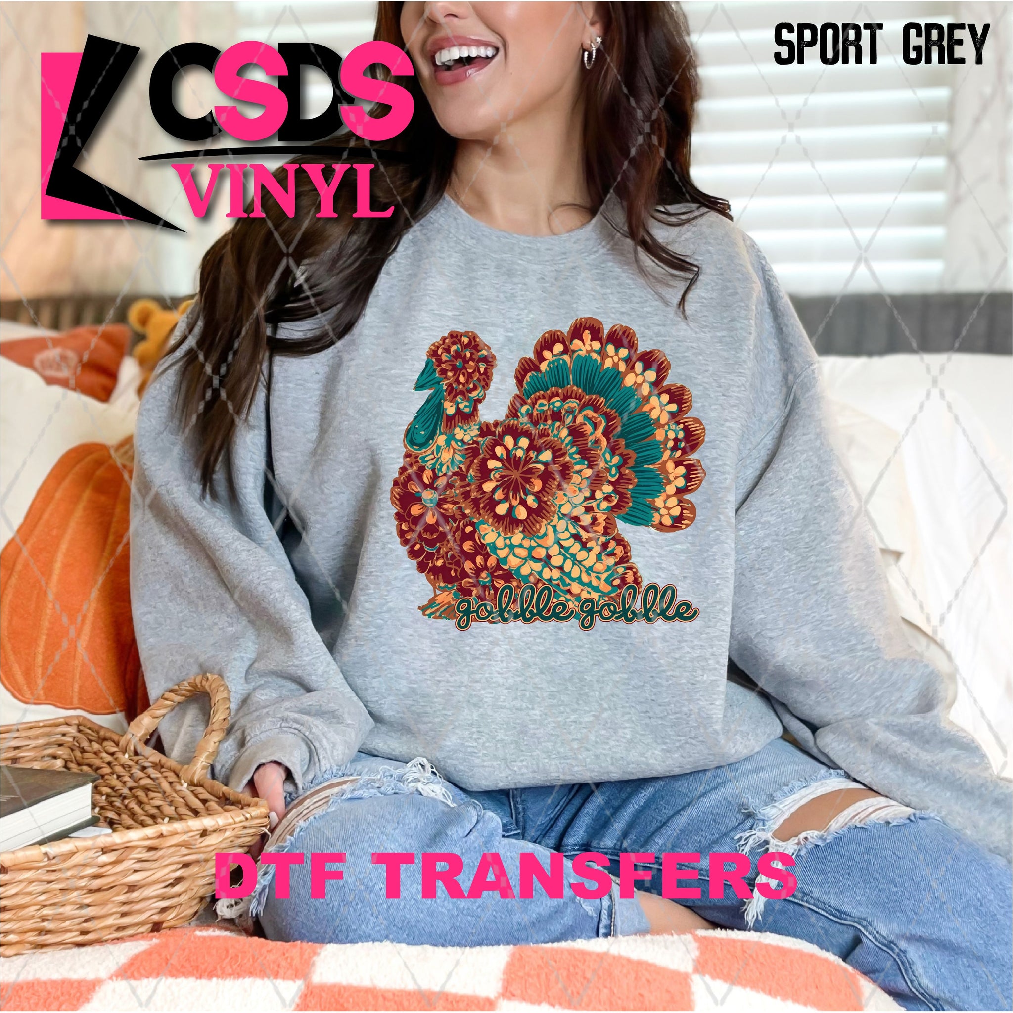 DTF transfers are a type of garment transfer that has been printed using a water-based DTF ink printed onto a clear release paper. This allows the end user the flexibility of when the transfer is applied and what the transfer is applied to. DTF transfers can be made in single color or full color images. Keep in mind that full color transfers will feel slightly thicker than single color transfers simply because more ink is used to create the transfer itself but we do pride ourselves with having some of the thinnest full color DTF transfers on the market. DTF transfers from CSDS Vinyl can be applied to any cotton, polyester, or cotton-poly blend materials.