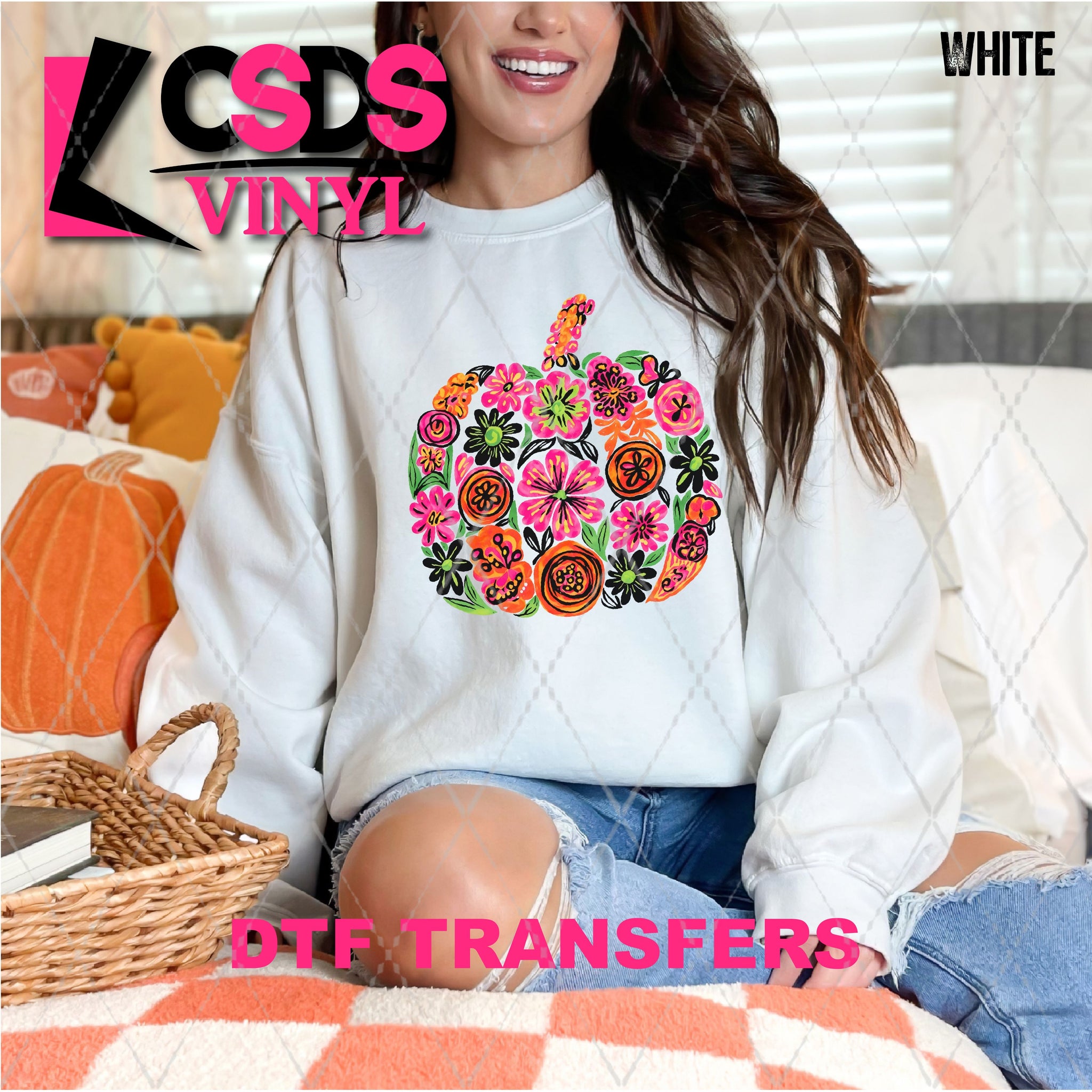 DTF Transfer - DTF013205 Halloween Floral Pumpkin