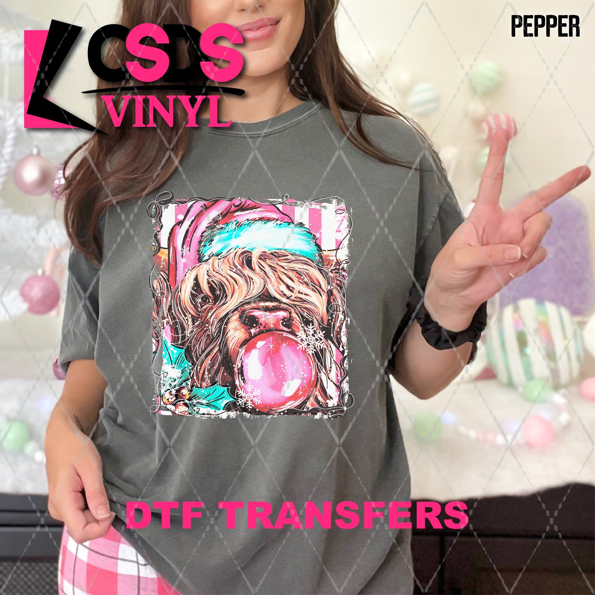 DTF transfers are a type of garment transfer that has been printed using a water-based DTF ink printed onto a clear release paper. This allows the end user the flexibility of when the transfer is applied and what the transfer is applied to. DTF transfers can be made in single color or full color images. Keep in mind that full color transfers will feel slightly thicker than single color transfers simply because more ink is used to create the transfer itself but we do pride ourselves with having some of the thinnest full color DTF transfers on the market. DTF transfers from CSDS Vinyl can be applied to any cotton, polyester, or cotton-poly blend materials.