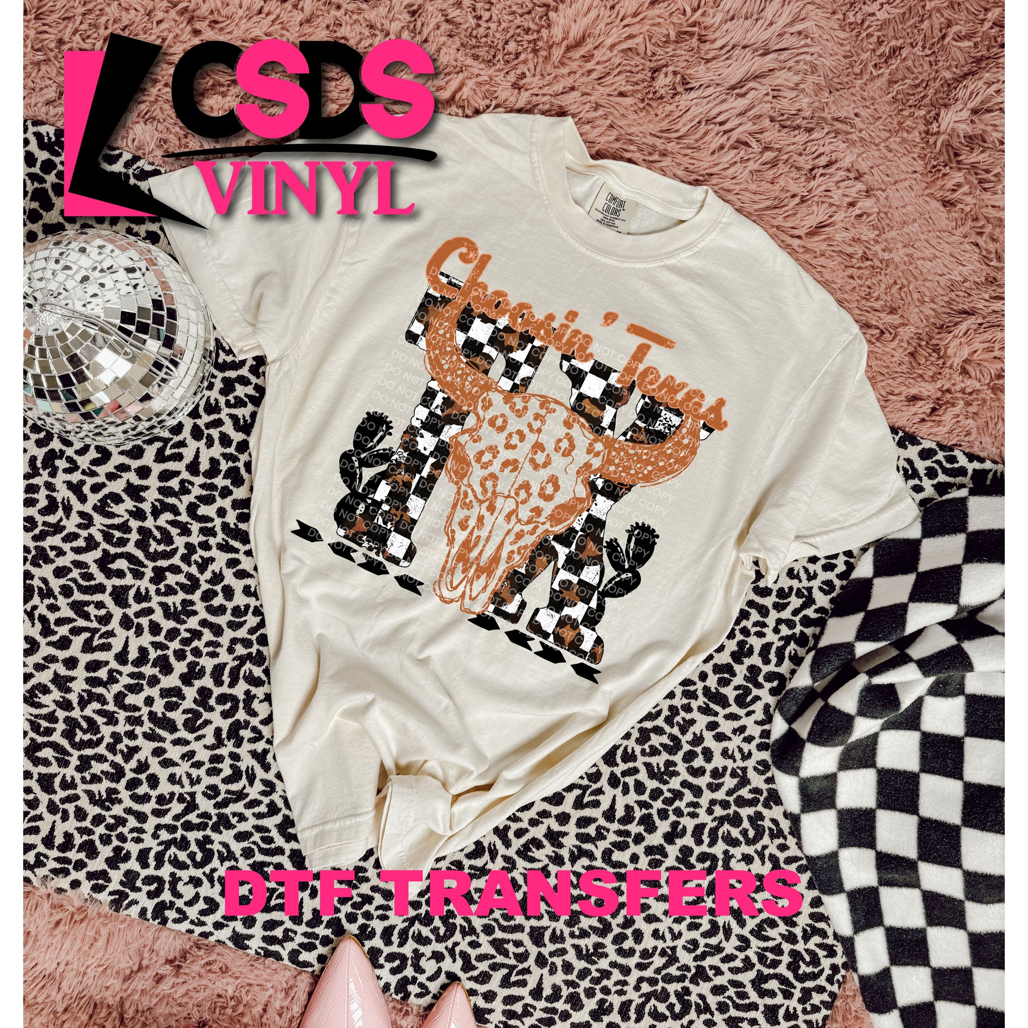 DTF transfers are a type of garment transfer that has been printed using a water-based DTF ink printed onto a clear release paper. This allows the end user the flexibility of when the transfer is applied and what the transfer is applied to. DTF transfers can be made in single color or full color images. Keep in mind that full color transfers will feel slightly thicker than single color transfers simply because more ink is used to create the transfer itself but we do pride ourselves with having some of the thinnest full color DTF transfers on the market. DTF transfers from CSDS Vinyl can be applied to any cotton, polyester, or cotton-poly blend materials.