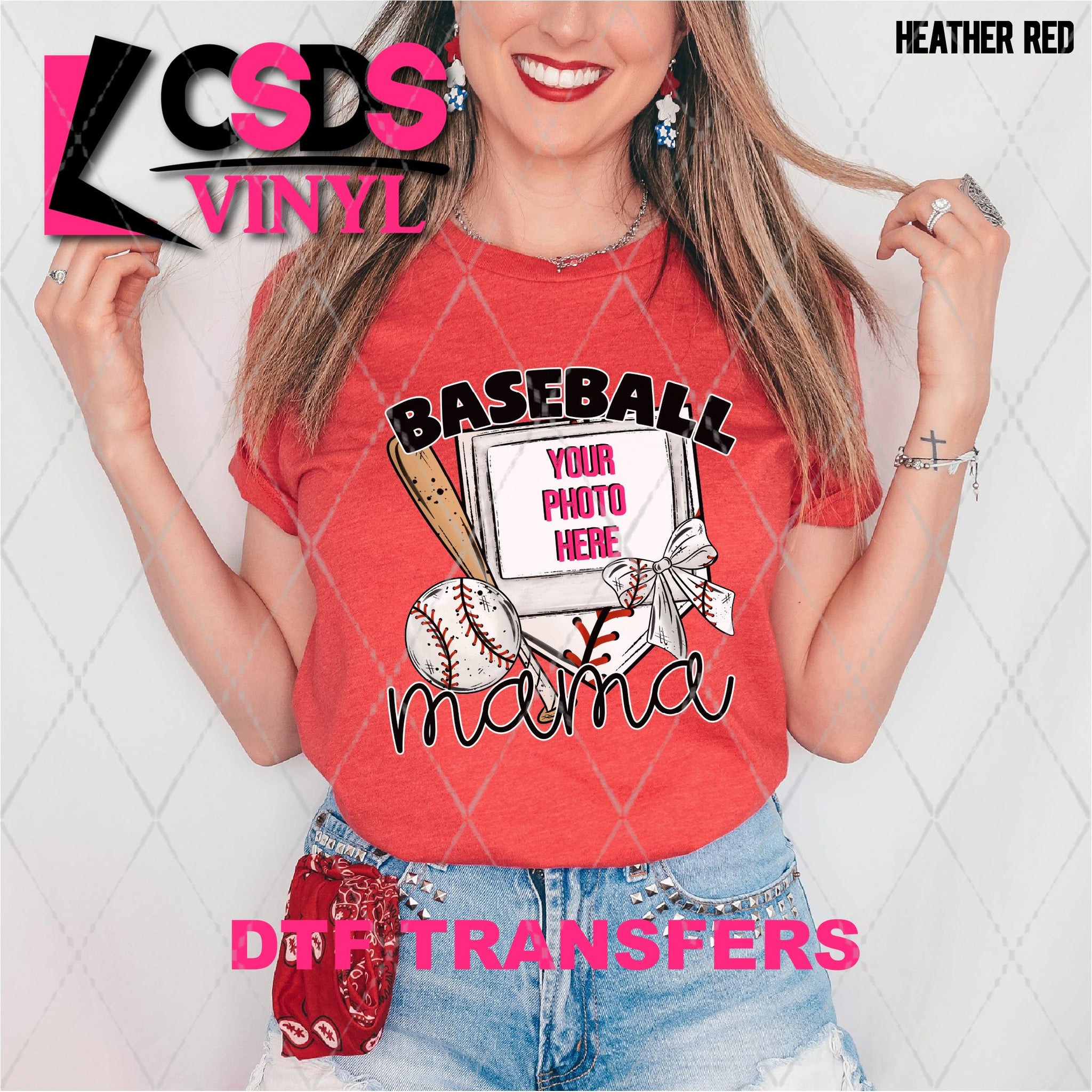 DTF transfers are a type of garment transfer that has been printed using a water-based DTF ink printed onto a clear release paper. This allows the end user the flexibility of when the transfer is applied and what the transfer is applied to. DTF transfers can be made in single color or full color images. Keep in mind that full color transfers will feel slightly thicker than single color transfers simply because more ink is used to create the transfer itself but we do pride ourselves with having some of the thinnest full color DTF transfers on the market. DTF transfers from CSDS Vinyl can be applied to any cotton, polyester, or cotton-poly blend materials.