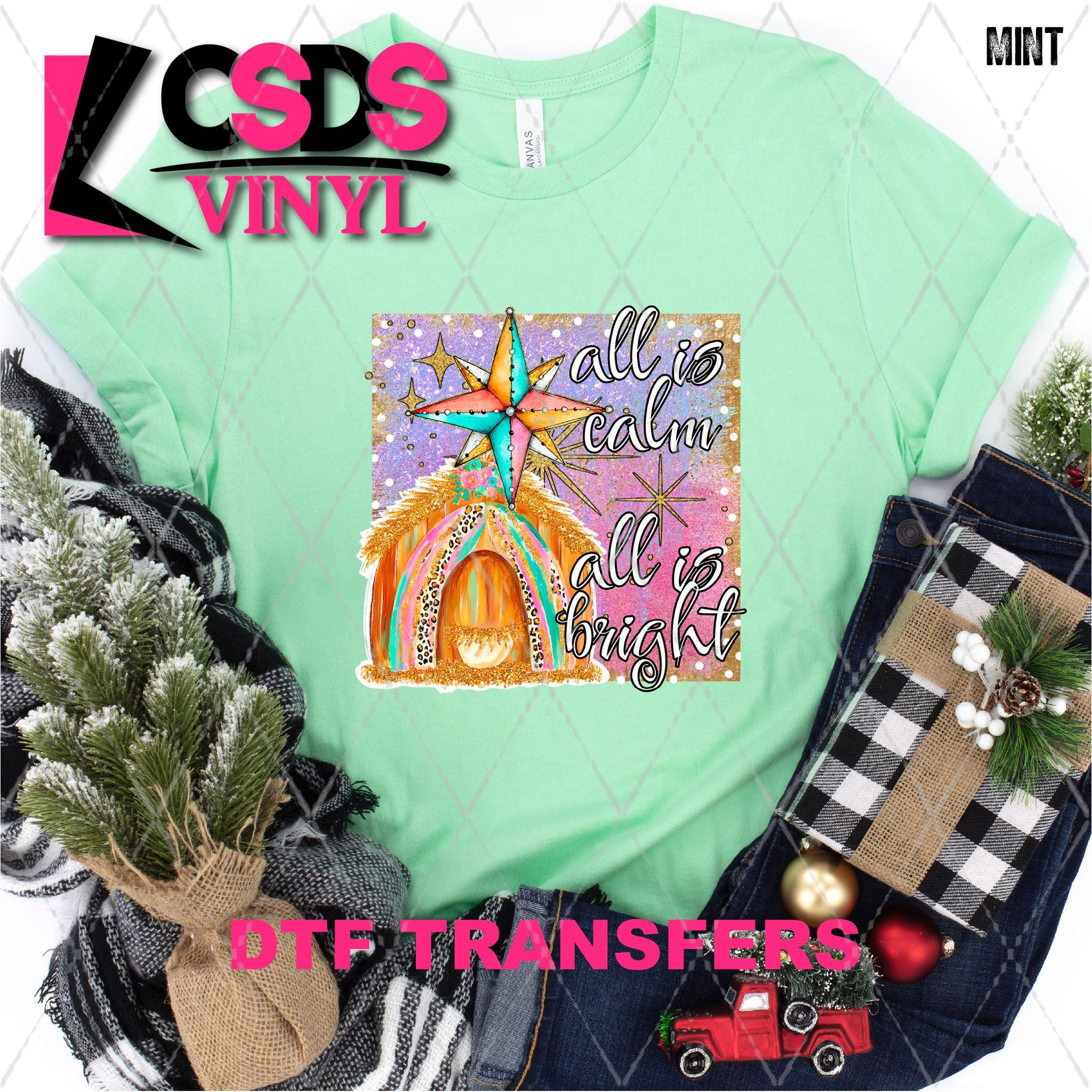DTF transfers are a type of garment transfer that has been printed using a water-based DTF ink printed onto a clear release paper. This allows the end user the flexibility of when the transfer is applied and what the transfer is applied to. DTF transfers can be made in single color or full color images. Keep in mind that full color transfers will feel slightly thicker than single color transfers simply because more ink is used to create the transfer itself but we do pride ourselves with having some of the thinnest full color DTF transfers on the market. DTF transfers from CSDS Vinyl can be applied to any cotton, polyester, or cotton-poly blend materials.