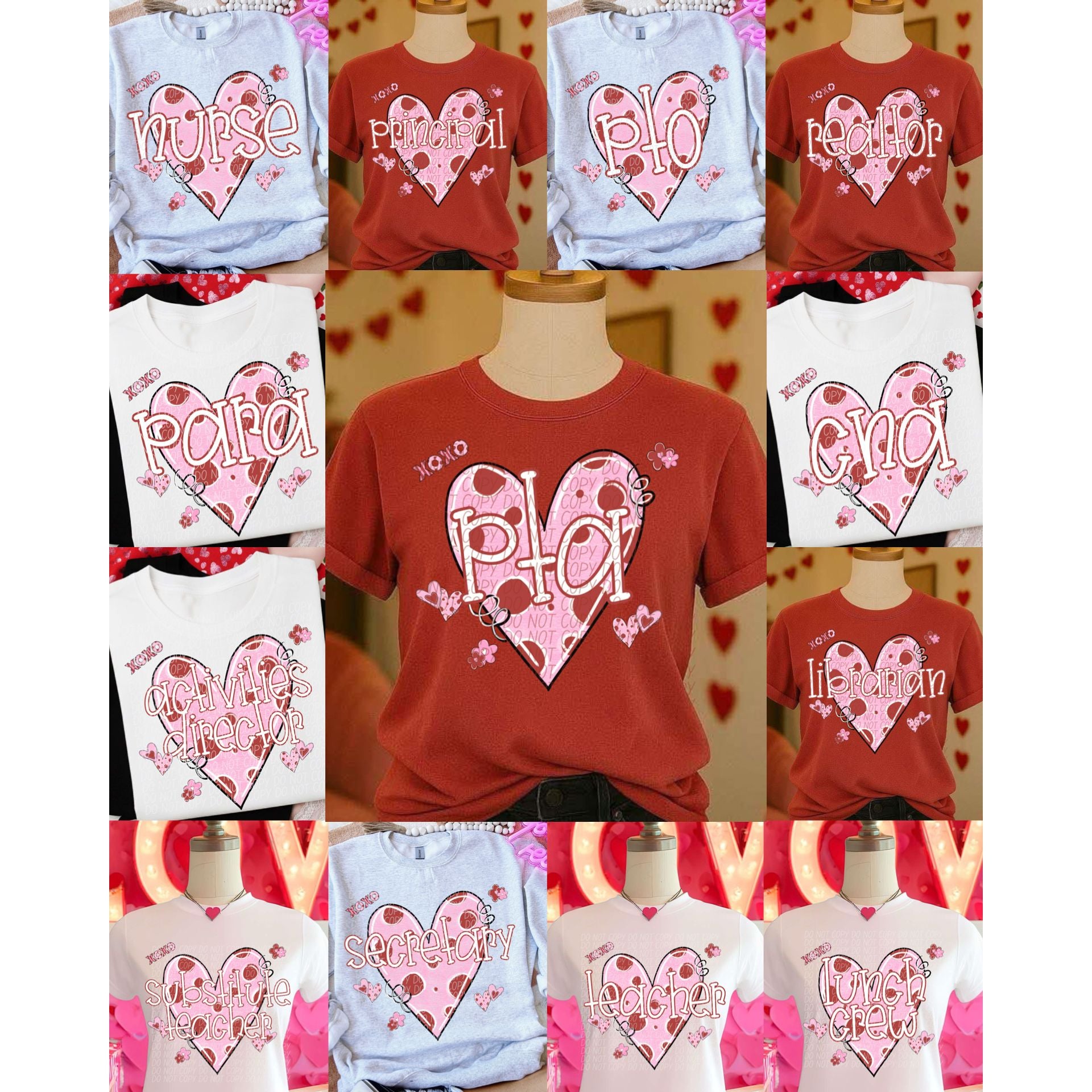 DTF Transfer - DTF015026 Valentines Day Red & Pink Career Titles