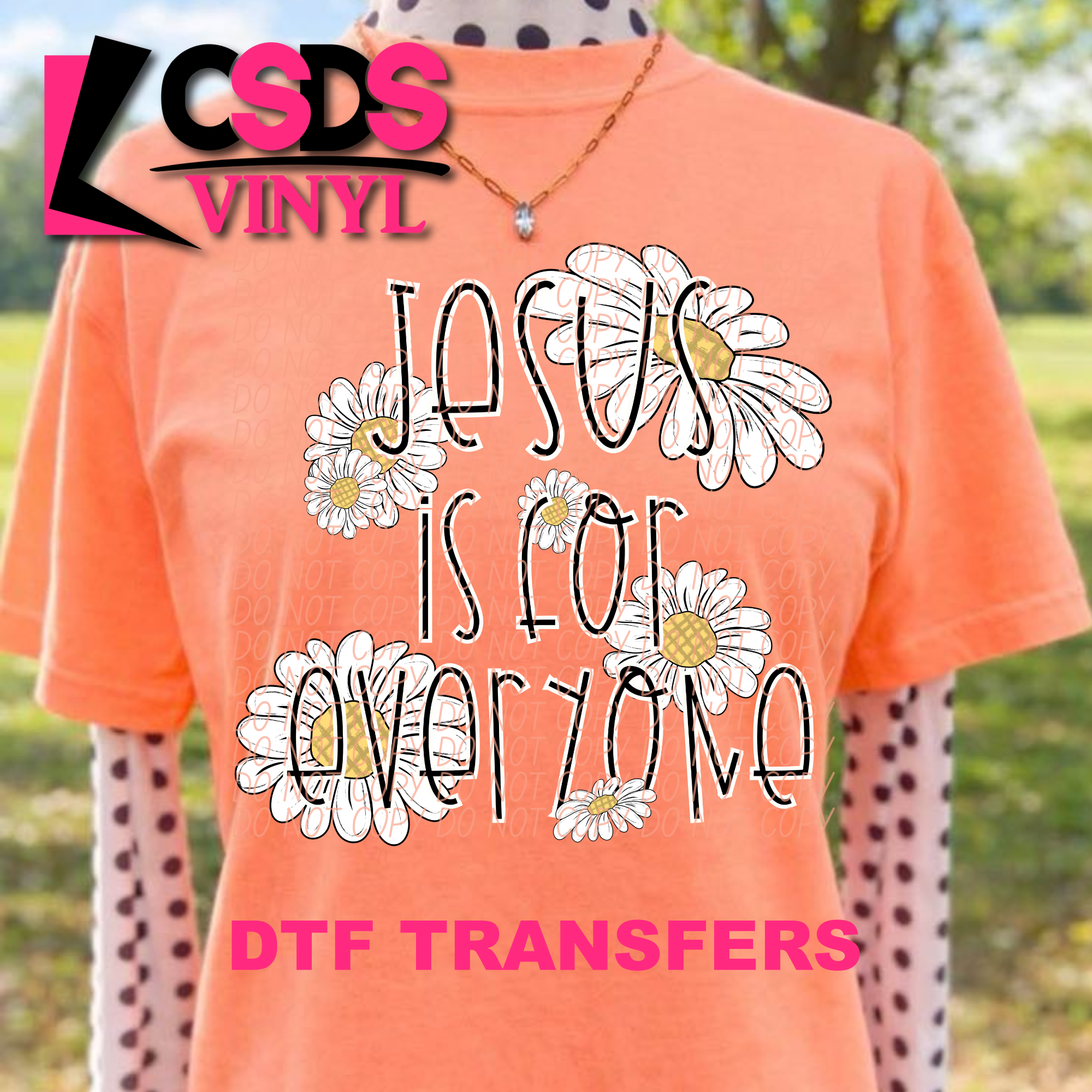DTF transfers are a type of garment transfer that has been printed using a water-based DTF ink printed onto a clear release paper. This allows the end user the flexibility of when the transfer is applied and what the transfer is applied to. DTF transfers can be made in single color or full color images. Keep in mind that full color transfers will feel slightly thicker than single color transfers simply because more ink is used to create the transfer itself but we do pride ourselves with having some of the thinnest full color DTF transfers on the market. DTF transfers from CSDS Vinyl can be applied to any cotton, polyester, or cotton-poly blend materials.
