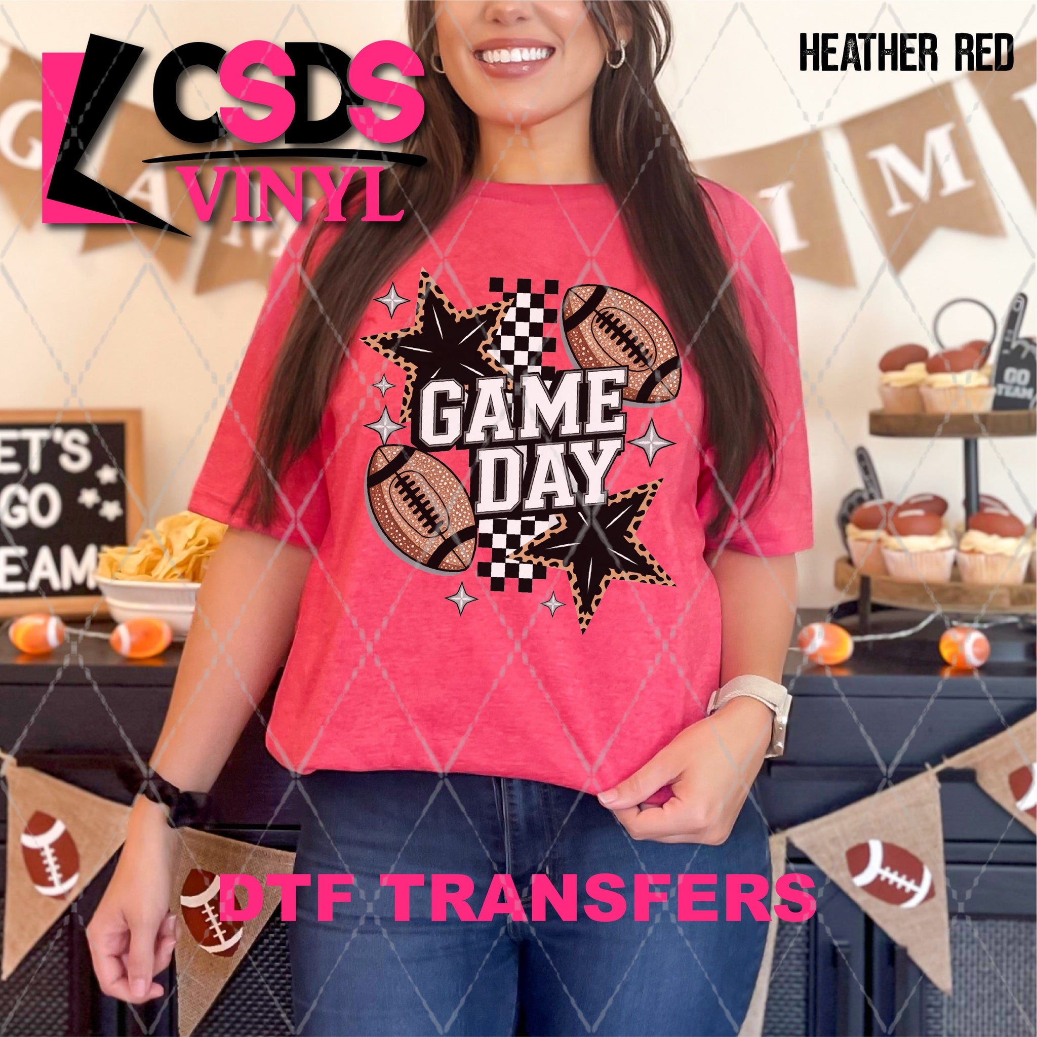 DTF transfers are a type of garment transfer that has been printed using a water-based DTF ink printed onto a clear release paper. This allows the end user the flexibility of when the transfer is applied and what the transfer is applied to. DTF transfers can be made in single color or full color images. Keep in mind that full color transfers will feel slightly thicker than single color transfers simply because more ink is used to create the transfer itself but we do pride ourselves with having some of the thinnest full color DTF transfers on the market. DTF transfers from CSDS Vinyl can be applied to any cotton, polyester, or cotton-poly blend materials.