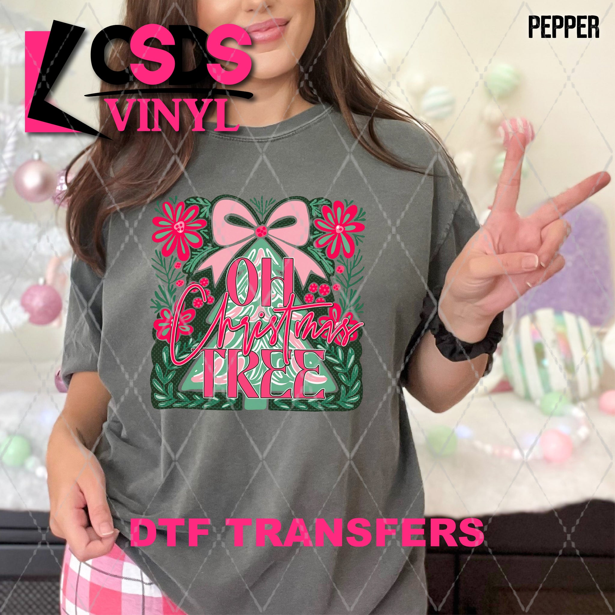 DTF transfers are a type of garment transfer that has been printed using a water-based DTF ink printed onto a clear release paper. This allows the end user the flexibility of when the transfer is applied and what the transfer is applied to. DTF transfers can be made in single color or full color images. Keep in mind that full color transfers will feel slightly thicker than single color transfers simply because more ink is used to create the transfer itself but we do pride ourselves with having some of the thinnest full color DTF transfers on the market. DTF transfers from CSDS Vinyl can be applied to any cotton, polyester, or cotton-poly blend materials.