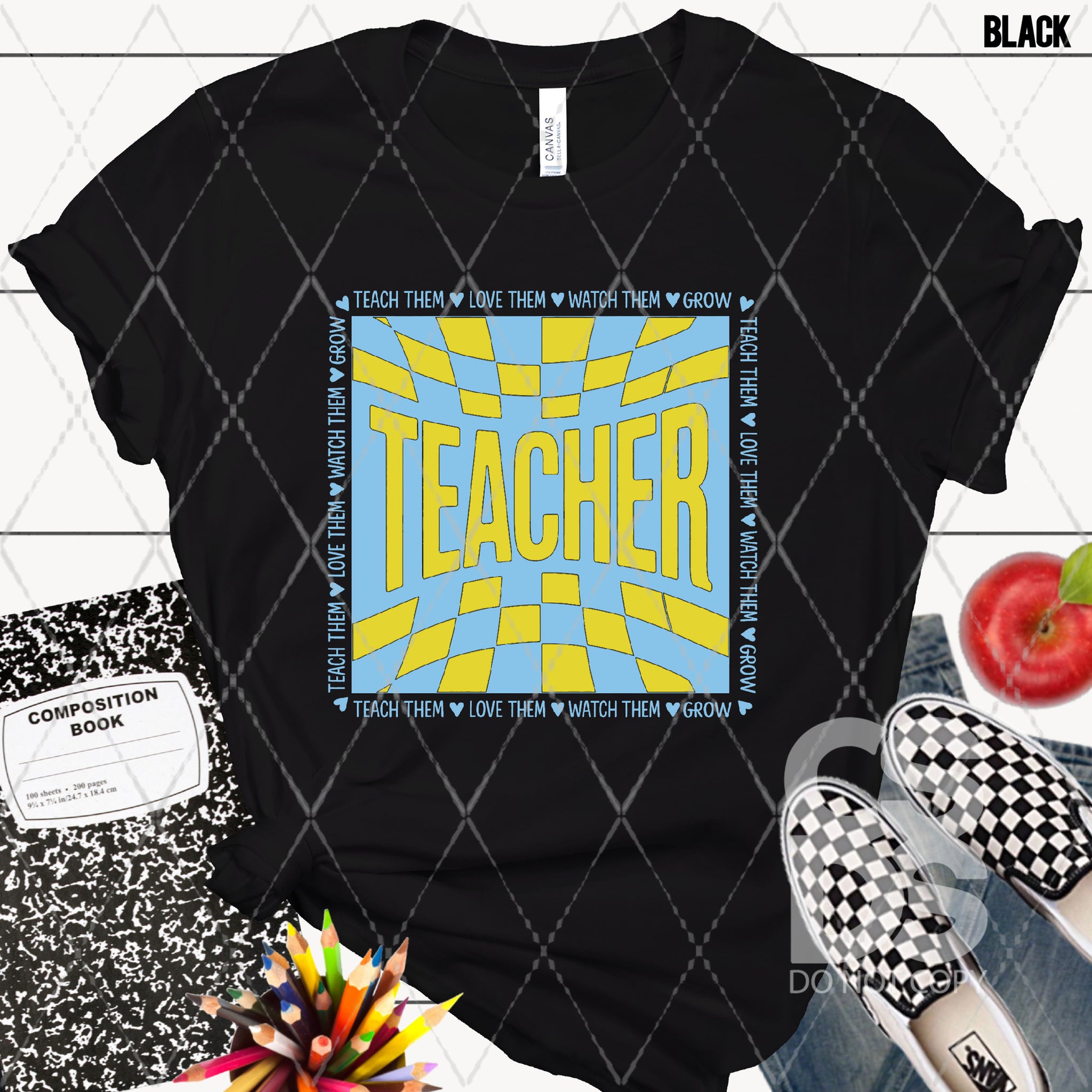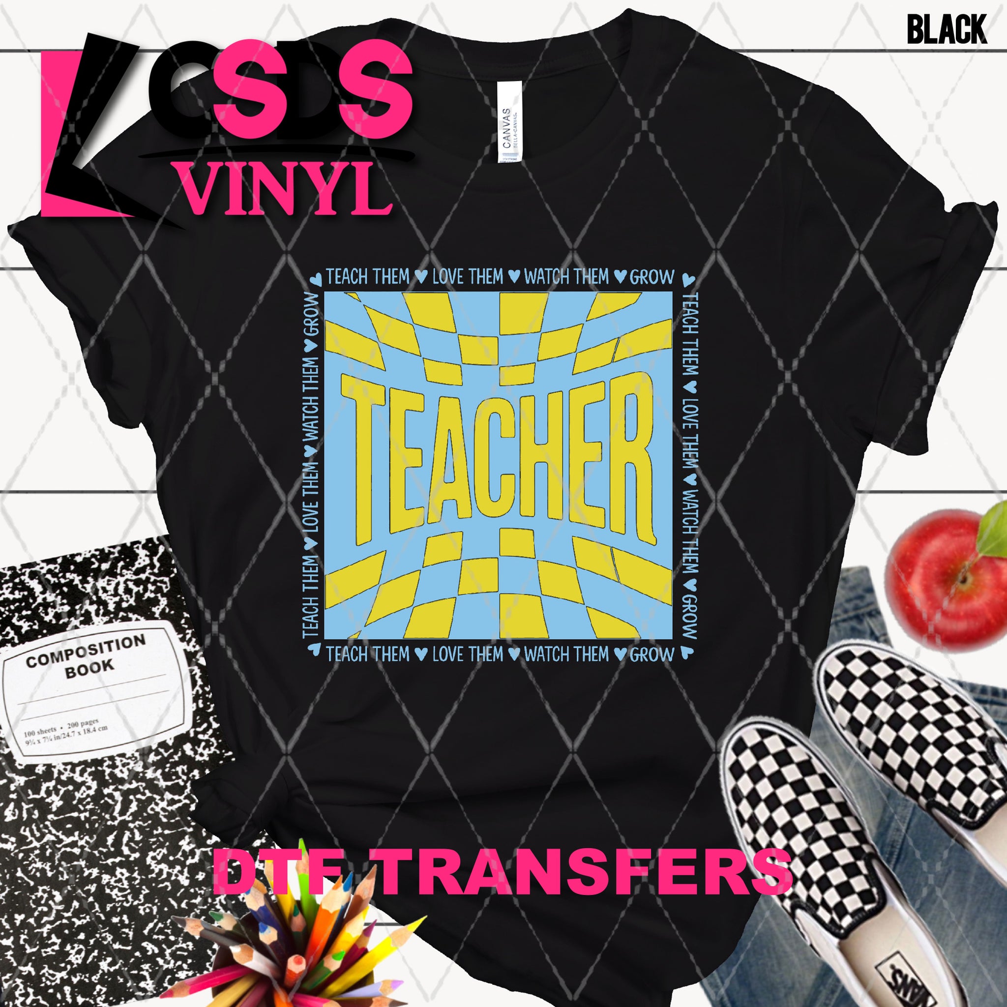 DTF Transfer - DTF012804 Checkered Teacher Light Blue Yellow
