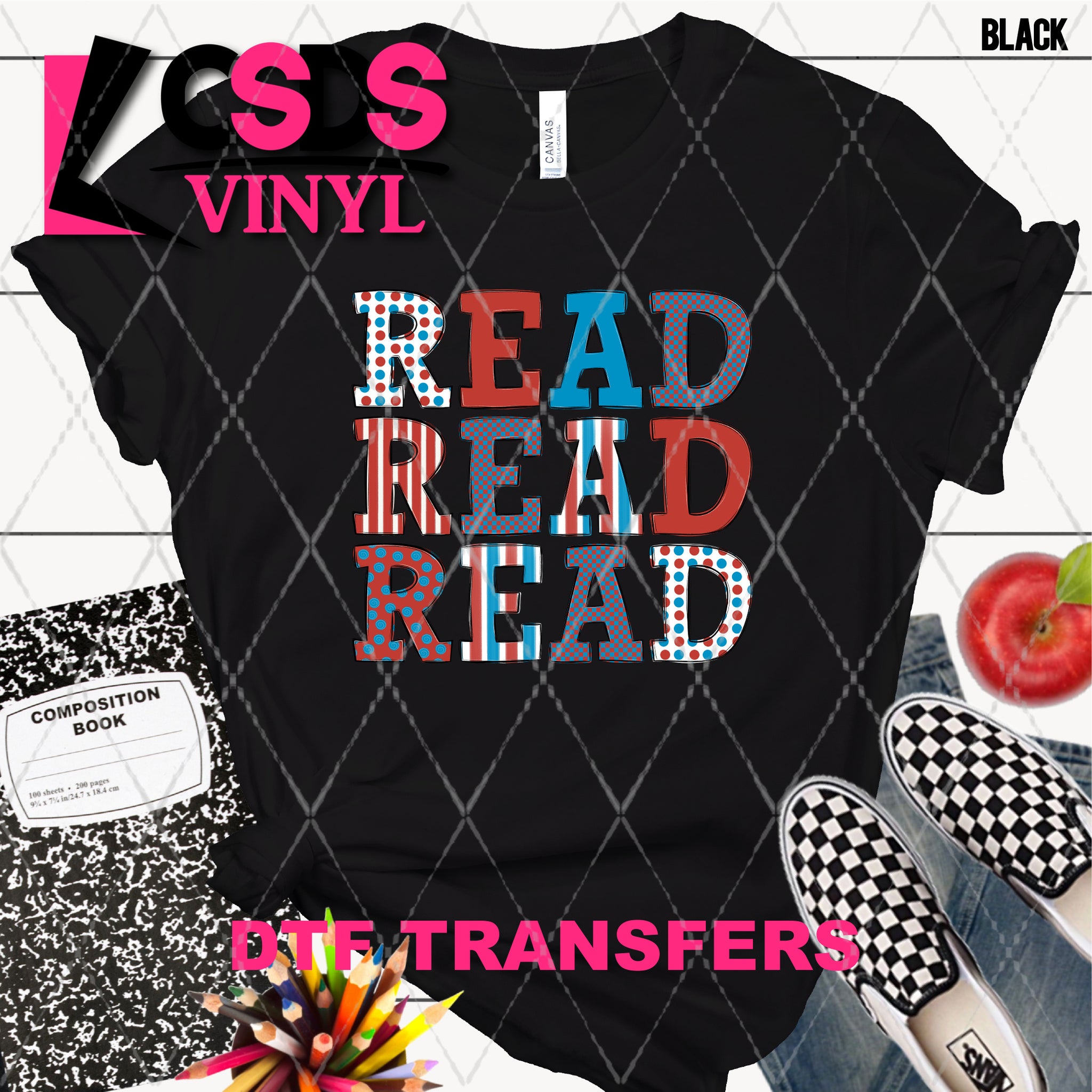 DTF transfers are a type of garment transfer that has been printed using a water-based DTF ink printed onto a clear release paper. This allows the end user the flexibility of when the transfer is applied and what the transfer is applied to. DTF transfers can be made in single color or full color images. Keep in mind that full color transfers will feel slightly thicker than single color transfers simply because more ink is used to create the transfer itself but we do pride ourselves with having some of the thinnest full color DTF transfers on the market. DTF transfers from CSDS Vinyl can be applied to any cotton, polyester, or cotton-poly blend materials.