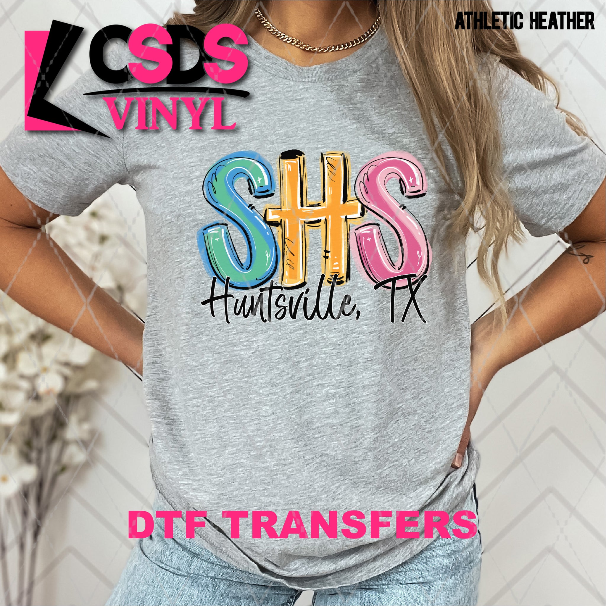 DTF transfers are a type of garment transfer that has been printed using a water-based DTF ink printed onto a clear release paper. This allows the end user the flexibility of when the transfer is applied and what the transfer is applied to. DTF transfers can be made in single color or full color images. Keep in mind that full color transfers will feel slightly thicker than single color transfers simply because more ink is used to create the transfer itself but we do pride ourselves with having some of the thinnest full color DTF transfers on the market. DTF transfers from CSDS Vinyl can be applied to any cotton, polyester, or cotton-poly blend materials.