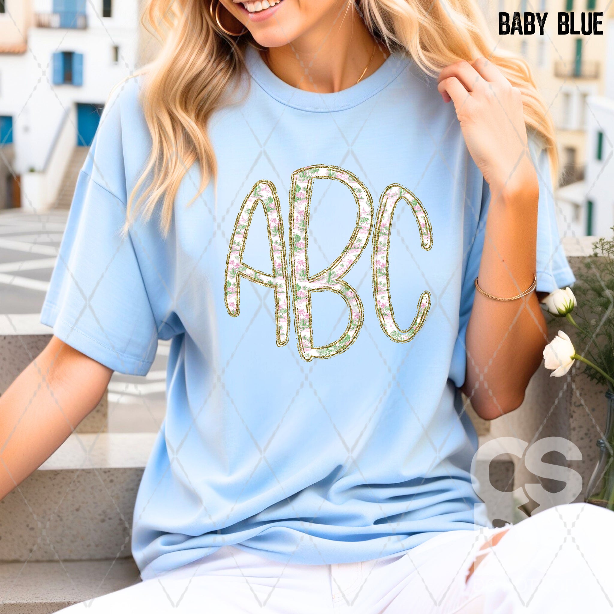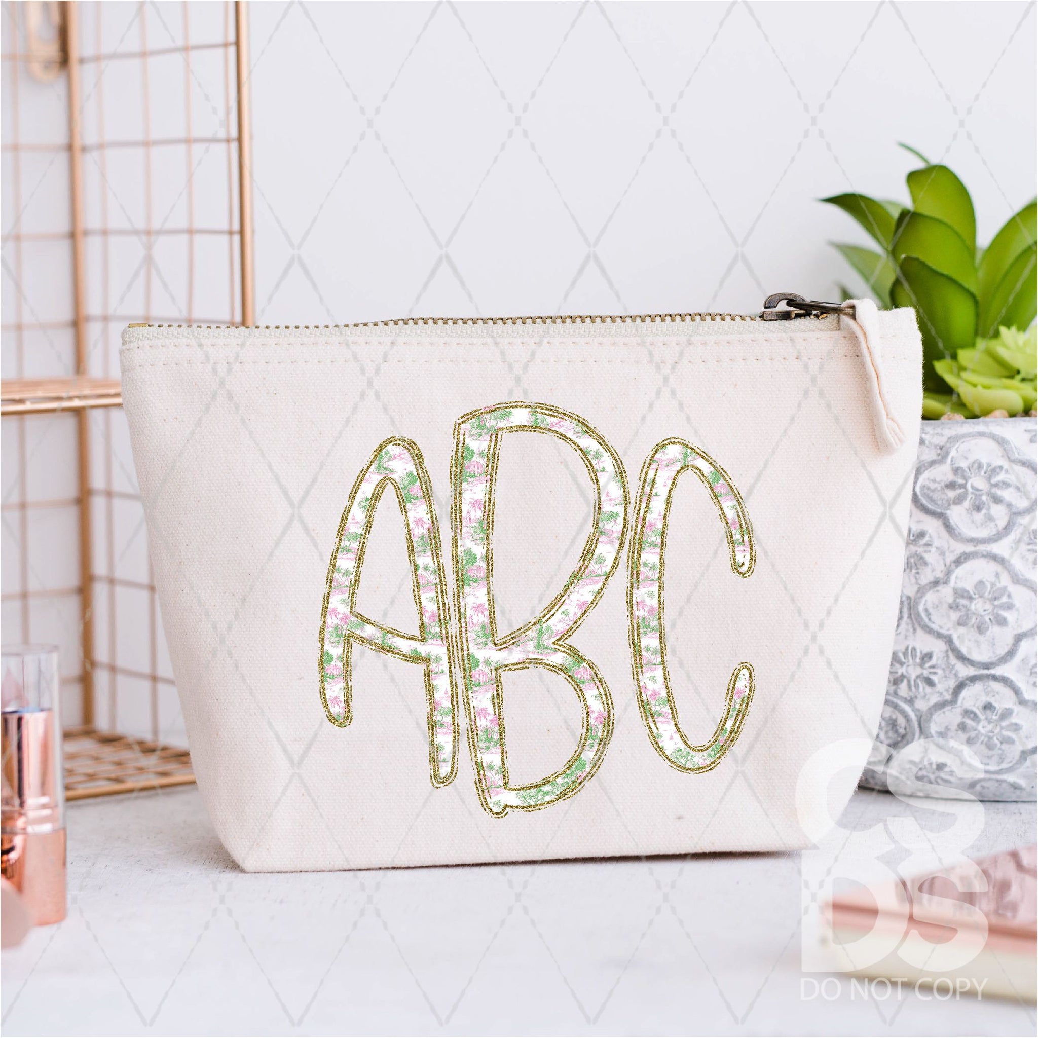 DTF Transfer - DTFCUSTOM323 - Pink and Green Toile Monogram