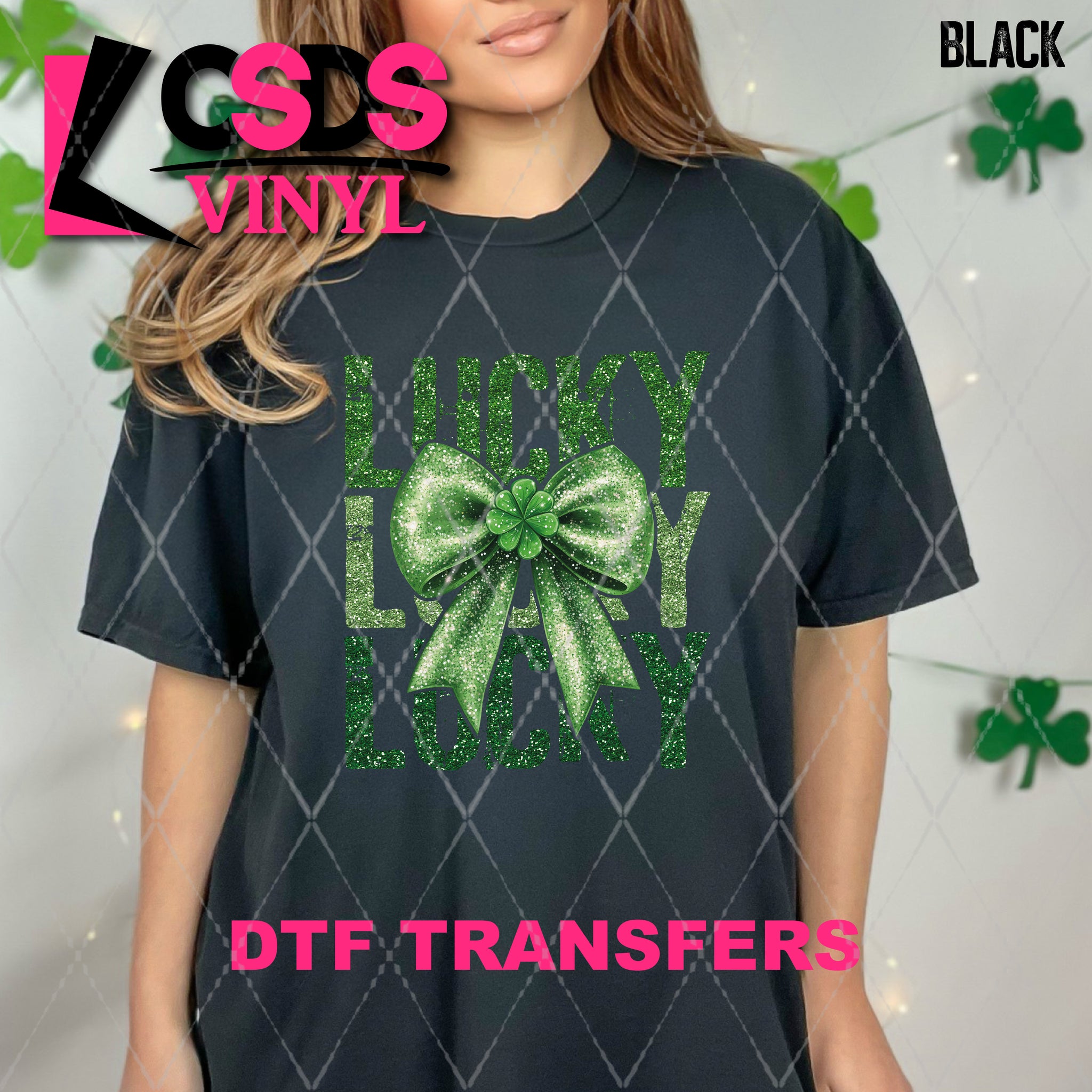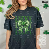 DTF Transfer - DTF011382 Lucky Coquette Bow Stacked Word Art Faux Glitter