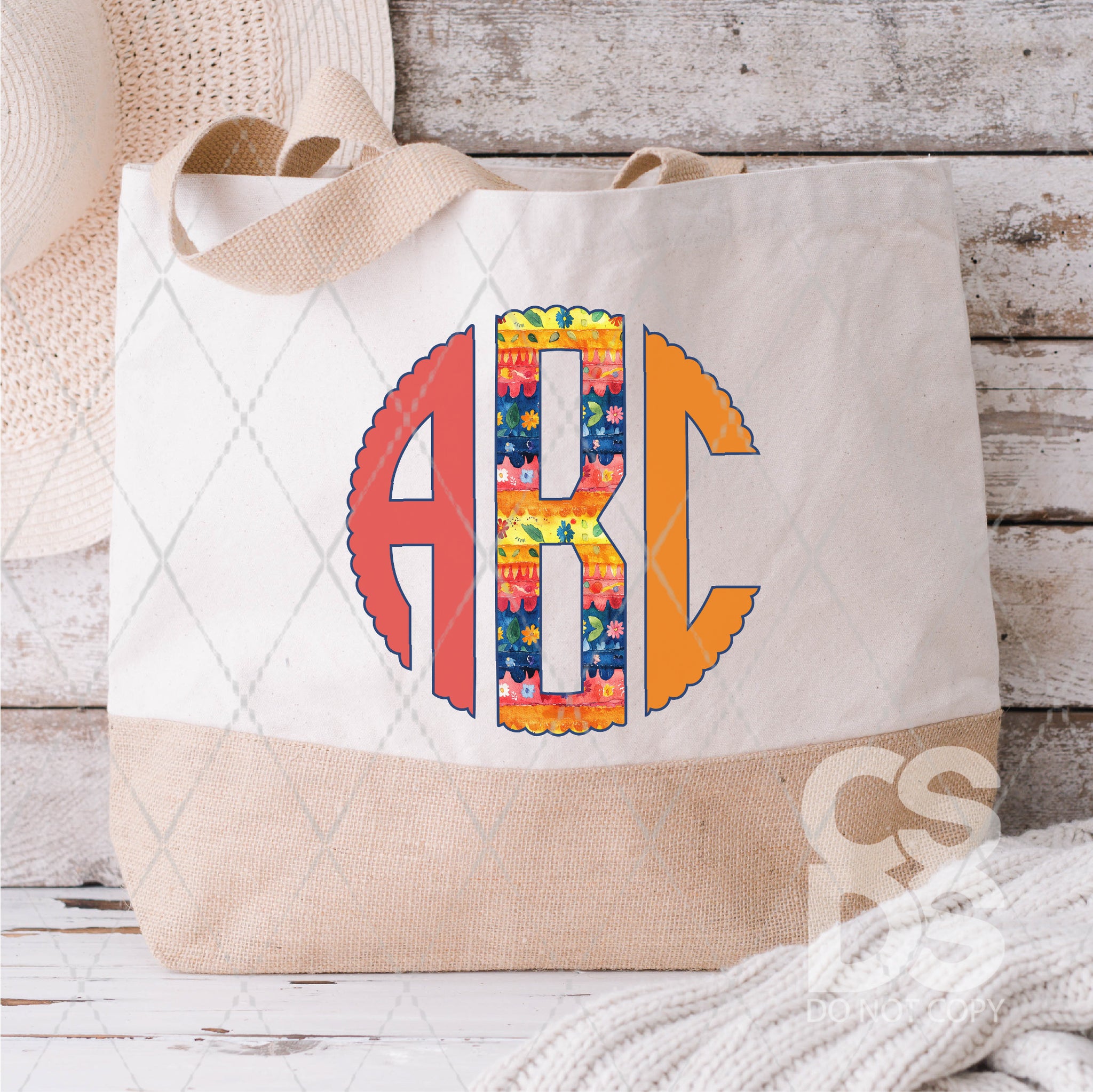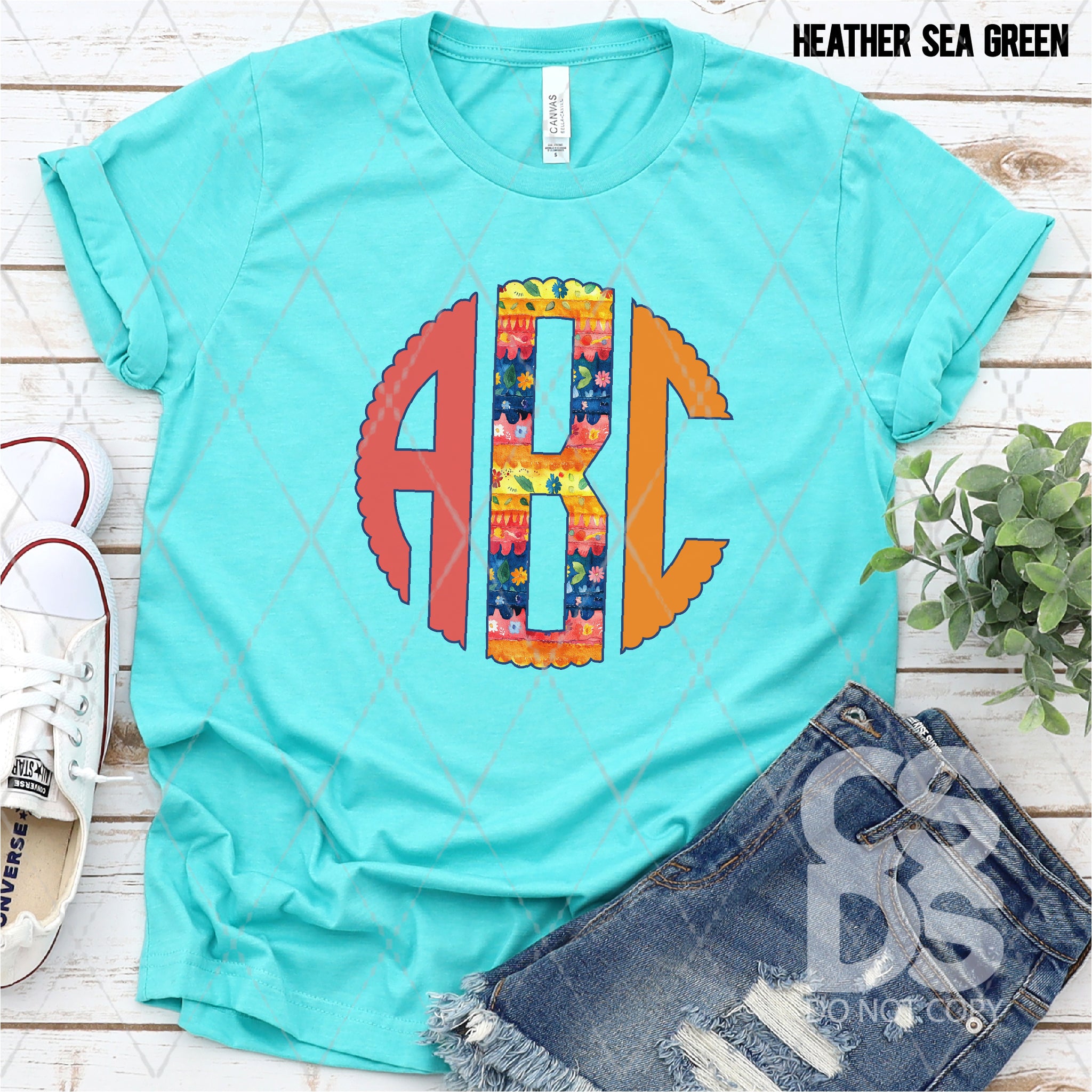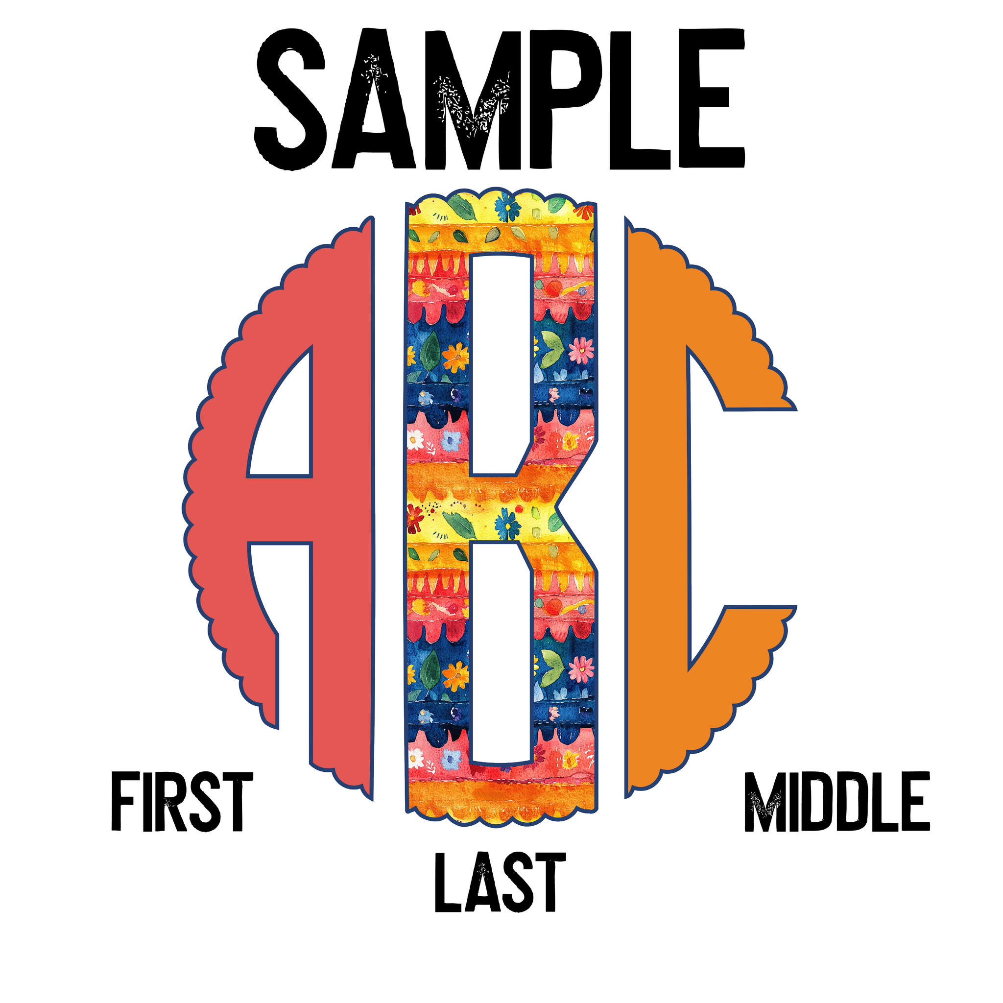 DTF Transfer - DTFCUSTOM267 - Watercolor Mexican Floral Monogram