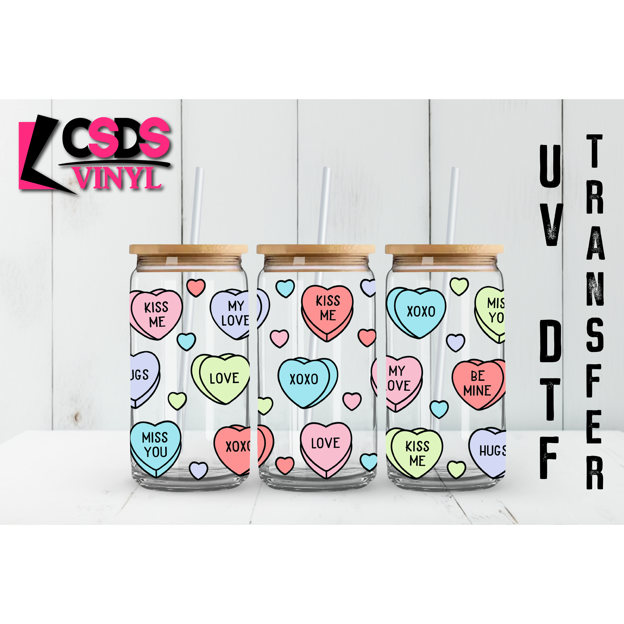 UV DTF decals a new printing method that uses ultraviolet curing technology to create designs on films. These designs can then be transferred onto hard and irregular-shaped objects by pressing down with fingers and then peeling off the film. This allows the end user the flexibility of when the transfer is applied and what the transfer is applied to. UV DTF transfers can be made in single color or full color images. UV DTF transfers from CSDS Vinyl can be applied to any hard substrates such as glass, plastic, metal, and similar.